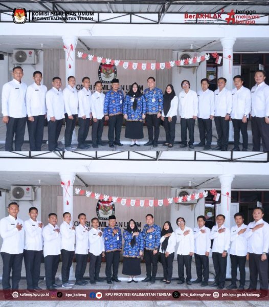 KPU Provinsi Kalimantan Tengah melaksanakan Upacara Memperingati Hari Kesaktian Pancasila Tahun 2025. Adapun yang bertindak sebagai Inspektur Upacara adalah Sastriadi, Ketua KPU Provinsi Kalimantan Tengah, dan Komandan Upacara oleh Kepala Bagian Perencanaan, Data dan Informasi, Partisipasi Masyarakat dan SDM KPU Provinsi Kalimantan Tengah, Samsul Anam. Turut hadir Anggota KPU Provinsi Kalimantan Tengah Dwi Swasono, Harmain, dan Wawan Wiraatmaja, Kepala Bagian Keuangan, Umum dan Logistik, Agustari Kristidiningrum, Kepala Sub Bagian, serta seluruh staf Sekretariat KPU Provinsi Kalimantan dan Mahasiswa Magang. ....