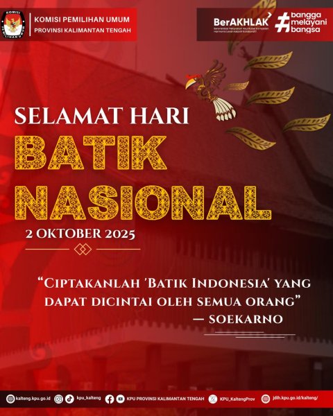 Segenap Jajaran KPU Provinsi Kalimantan Tengah mengucapkan Selamat Hari Batik Nasional Tahun 2025! ....