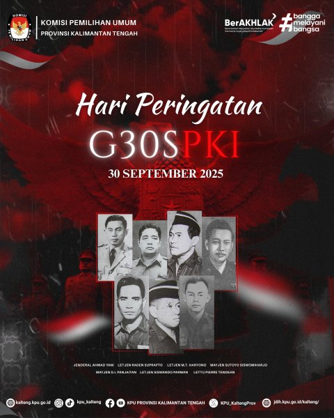 Segenap jajaran KPU Provinsi Kalimantan Tengah turut mengenang jasa para pahlawan yang gugur dalam peristiwa G30S PKI. Peristiwa G30S PKI bukan hanya sekedar catatan kelam, mereka yang gugur merupakan bukti Sejarah dalam mempertahankan Ideologi bangsa. Mari jagalah persatuan bangsa, mari lawan yang menjadi dasar perpecahan Indonesia.