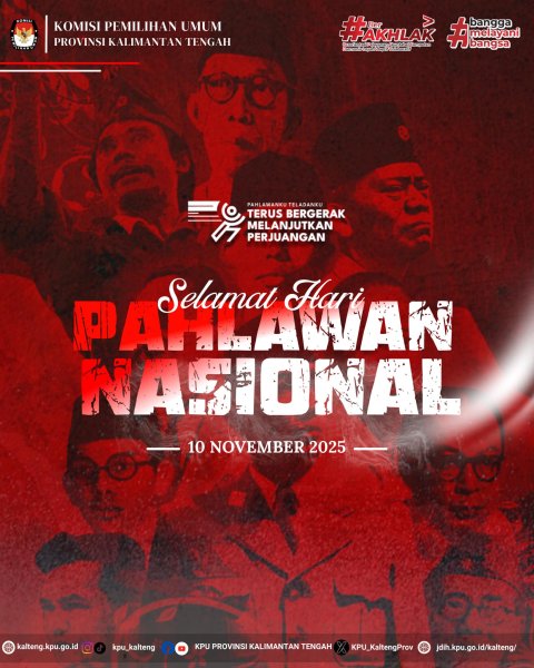 KPU Provinsi Kalimantan Tengah melaksanakan Upacara Peringatan Hari Pahlawan Tahun 2025 yang mengusung tema “Pahlawanku Teladanku: Terus Bergerak Melanjutkan Perjuangan” bertempat di Halaman Kantor KPU Provinsi Kalimantan Tengah pada Senin, 10 November 2025.