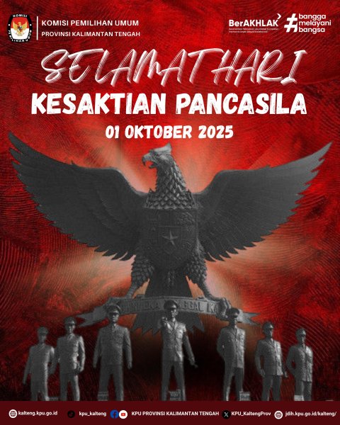 Segenap Jajaran KPU Provinsi Kalimantan Tengah mengucapkan Selamat Memperingati Hari Kesaktian Pancasila 2025.
