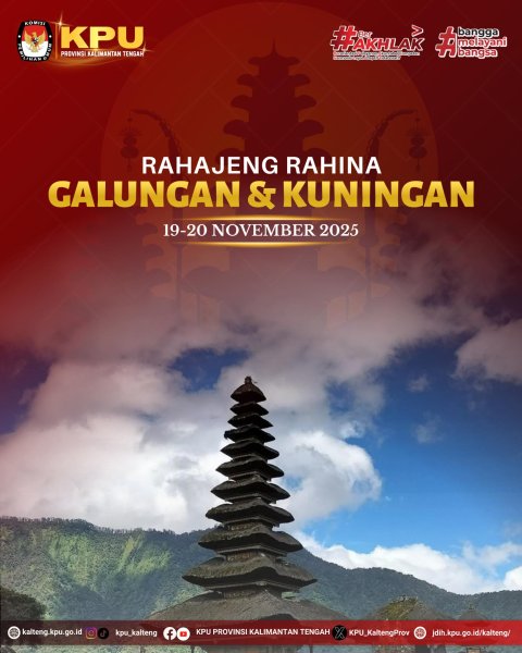 Segenap Jajaran KPU Provinsi Kalimantan Tengah mengucapkan Selamat Hari Raya Galungan dan Kuningan.