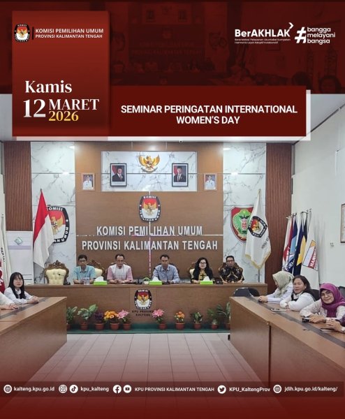 Komisi Pemilihan Umum Provinsi Kalimantan Tengah mengikuti pelaksanaan kegiatan seminar dalam rangka memperingati hari International Women's Day.