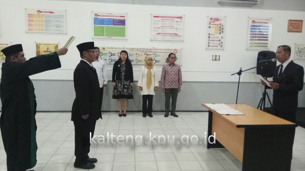 Palangka Raya, www.kalteng.kpu.go.id-Ketua Komisi Pemilihan Umum (KPU) Provinsi Kalimantan Tengah (Kalteng)H. Ahmad Syar’i melantik Ir. Ook Sanjaya sebagai anggota KPU Kabupaten Murung Raya menggantikan Ansharuddin yang mengundurkan diri sebagai Anggota pada tanggal 30 Januari 2018. Pelantikan dan Pengambilan Sumpah Pengganti Antar Waktu (PAW) Anggota KPU Kabupaten Murung Raya tersebut berlangsung diruang Rumah Pintar Pemilu (RPP) KPU Provinsi Kalimantan Tengah, Kamis(29/03/2018). Hadir padaacara pelantikan tersebut, para Komisioner KPU Provinsi Kalimantan Tengah, Ketua KPU Kabupaten Kabupaten Murung Raya beserta Anggota, serta pejabat SekretariatKPU Provinsi Kalimantan Tengah beserta Staf. Ir. Ook Sanjaya dilantik menjadi Anggota KPU Kabupaten Murung Raya berdasarkan Keputusan KPU Provinsi Kalimantan Tengah Nomor : 18/SDM.13-Kpt/62/Prov/III/2018 tanggal 29 Maret 2018 tentang Pengesahan Pengangkatan Pengganti Antarwaktu Anggota Komisi Pemilihan Umum Kabupaten Murung Raya Masa Jabatan 2013-2018. Dalam amanatnya H. Ahmad Syar’i menekankan kepada Anggota KPU Kabupaten Murung Rayayang baru dilantik dalam melaksanakan tugas agar “selalu menjaga integritas dan kejujuran serta melakukan konsolidasi internal terkait tugas Divisi yang diembannya, mempelajari serta langsung menerapkan dan melaksanakan tahapan baik itu tahapan Pilkada 2018 maupun Pemilu 2019 berdasarkanregulasi yang ada.” Selain itu, H. Ahmad Syar’i juga meminta dalam melaksanakan tugas sebagai komisioner agar menjaga kehormatan lembaga, profesional, menjaga netralitas dan berlaku adil sebagai penyelenggara pemilu. Diakhir sambutannya H. Ahmad Syar’i menyampaikan ucapan selamat atas pelantikan ini, dan selamat menjalankan tugas baru, semoga Allah SWT memberikan bimbingan dan tuntunannya kepada kita semua dalam mengemban amanah ini. (G.C).