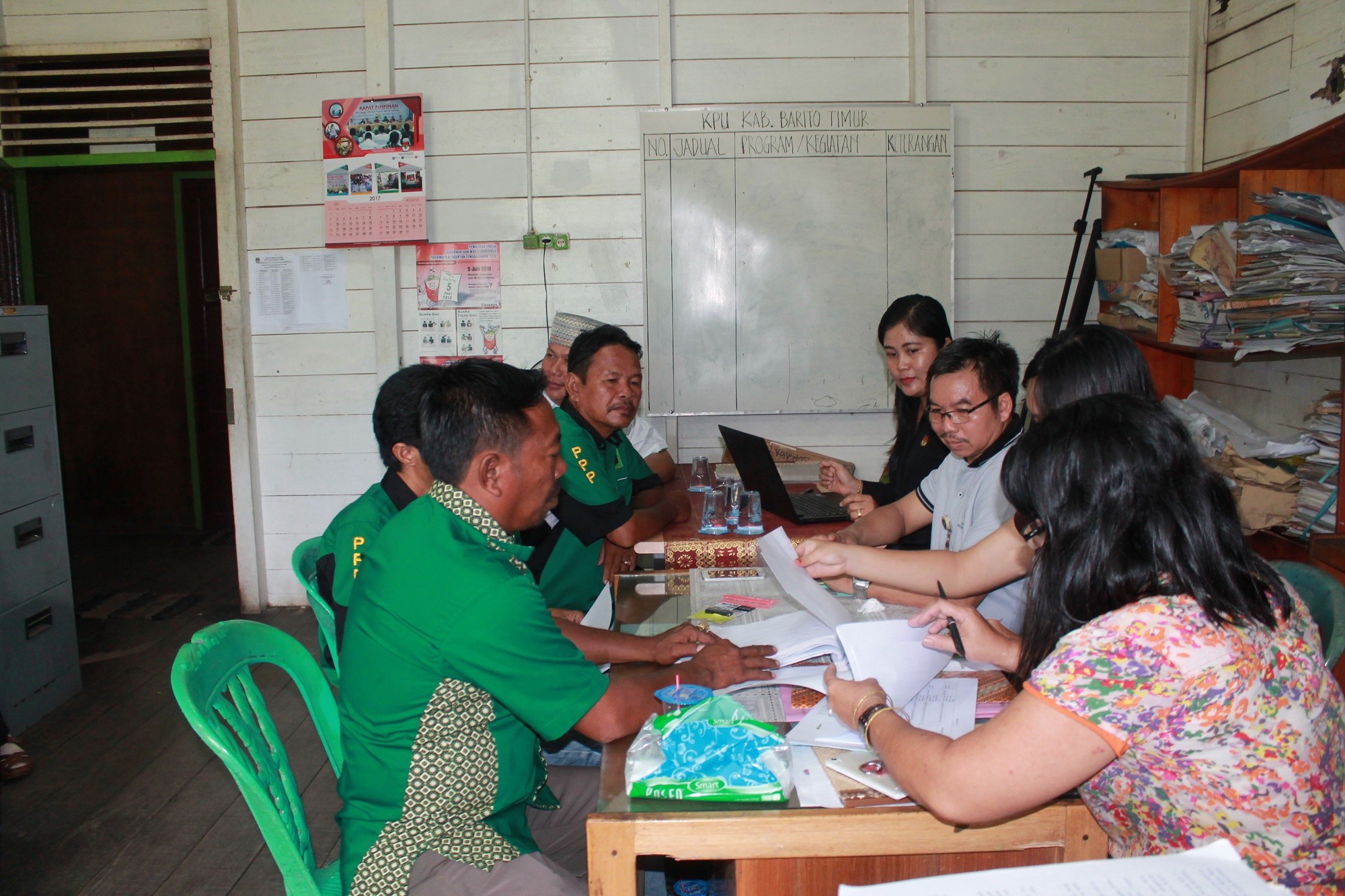 Palangka Raya (17/10) --- KPU Provinsi Kalimantan Tengah melaksanakan kegiatan monitoring dan supervisi penyerahan dan penerimaan berkas KTA dan KTP-El/Suket anggota Partai Politik serta penggunaan aplikasi SIPOL di KPU Kabupaten/Kota se – Kalimantan Tengah. Daan Rismon (Anggota KPU Provinsi Kalimantan Tengah) bersama 2 (dua) orang dari sekretariat KPU Provinsi Kalimantan Tengah melaksanakan monitoring dan supervisi ke KPU Kabupaten Gunung Mas, Kabupaten Barito Utara, Kabupaten Barito Timur dan Kabupaten Barito Selatan. Berdasarkan hasil monitoring penerapan/pelaksanaan aplikasi SIPOL di Kabupaten Gunung Mas, Barito Utara, Barito Timur dan Barito Selatan berjalan dengan baik. Partai Politik yang dinyatakan lengkap dokumennya baik terkait dengan Kartu Tanda Anggota Politik (KTA). Kartu Tanda Penduduk Elektronik/Surat Keterangan yang diterbitkan oleh Dinas Kependudukan dan Catatan Sipil dan daftar nama dan alamat anggota Partai Politik (Lampiran 2 Model F-2 Parpol) serta jumlah datanya sudah bersesuaian dengan data yang ada dalam SIPOL. Parpol yang sudah mendapatkan tanda terima, yaitu sebagai berikut : 1). KPU Kabupaten Gunung Mas : Penerimaan berkas Partai Politik yang dinyatakan lengkap per tanggal 13 Oktober 2017 dari pukul 08.00 s/d 16.00 WIB : PDIP, Perindo, NasDem; 2). KPU Kabupaten Barito Utara: Penerimaan berkas Partai Politik yang dinyatakan lengkap per tanggal 14 Oktober 2017 dari pukul 08.00 s/d 16.00 WIB : PDIP, PAN, Perindo, Partai Berkarya, NasDem; 3). KPU Kabupaten Barito Timur: Penerimaan berkas Partai Politik yang dinyatakan lengkap per tanggal 15 Oktober 2017 dari pukul 08.00 s/d 16.00 WIB : Perindo, NasDem, PSI, Partai Berkarya, PDIP, Gerindra dan PPP; 4). KPU Kabupaten Barito Selatan : Penerimaan berkas Partai Politik yang dinyatakan lengkap per tanggal 16 Oktober 2017 dari pukul 08.00 s/d 24.00 WIB : Partai Berkarya, PDIP, Perindo, PKS, PSI, PPP, Gerindra, NasDem, Golkar, PAN, Partai Republik, PKB, Partai Hanura, Partai Garuda, PKPI, PIKA, PBB, Partai Parsindo. Apr.
