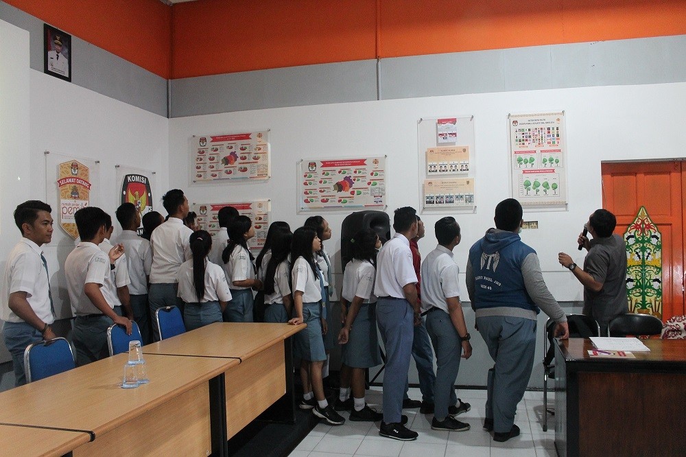 Palangka Raya, Senin (24/7) Siswa – siswi kelas XII IPS SMA Katholik St. Petrus Kanisius dan di dampingi oleh Kristin Natalia, S.Pd selaku Guru Bimbingan Konseling dan study PPKN mengunjungi Rumah Pintar Pemilu (RPP) KPU Provinsi Kalimantan Tengah, pada pukul 10.00 WIB. Kedatangan para siswa/siswi tersebut disambut oleh para staf, Kasubbag Hukum, Kasubbag Teknis dan Hupmas Sekretariat KPU Provinsi Kalimantan Tengah. Siswa – siswi yang berkunjung dipersilahkan mengisi daftar hadir dan selanjutnya petugas RPP menjelaskan tentang Rumah Pintar Pemilu (RPP), yang terdiri dari : 1). Display – display yang terdiri dari 12 (dua belas) konten nasional dan 20 (dua puluh) konten lokal, 2). Ruang Diskusi, 3). Maket tentang Tempat Pemungutan Suara (TPS), 4). Pemutaran Film Kepemiluan dan Dokumentasi Pemilihan Gubernur dan Wakil Gubernur Tahun 2015 susulan. Sesi pertama, Petugas RPP menjelaskan secara umum tentang konten – konten display kepada siswa – siswi tersebut, selanjutnya sesi kedua pemutaran Film pendek kepemiluan tentang Robo SP (pemenang festival film pendek KPU Tahun 2016), Film sejarah Pemilu di Indonesia dan pemutaran tentang dokumentasi Pemilihan Gubernur dan Wakil Gubernur Tahun 2015 susulan. Sesi ketiga pada kunjungan RPP yaitu diskusi dengan Komisioner KPU Provinsi Kalimantan Tengah. Forum diskusi yang dibuka secara langsung oleh Ahmad Syar’i (Ketua KPU Provinsi Kalimantan Tengah), Dalam sesi diskusi Ahmad Syar’i mempersilahkan kepada siswa – siswi SMA Katholik St. Petrus Kanisius untuk melakukan tanya jawab dengan Komisioner KPU Prov. Kalteng terkait dengan Pemilu dan demokrasi. Dalam kesempatan yang sama, Sepmiwawalma (Komisioner KPU Prov.Kalteng Div. Hukum) menjelaskan tentang syarat penggunaan hak pilih yaitu : Sudah mempunyai KTP – El atau Surat Keterangan dari Dinas Kependudukan dan Catatan Sipil (bagi warga yang KTP – El masih dalam proses). Telah berusia 17 (tujuh belas) tahun atau telah menikah pada saat hari pemungutan suara serta berdomisili di wilayah pemilihan. Sepmiwawalma juga menerangkan bahwa ada yang namanya Daerah Pemihan, di Kalimantan Tengah terdiri dari 5 (lima) Dapil, sebagai berikut : a). Dapil 1 : Katingan, Gunung Mas dan Kota Palangka Raya, b). Kotawaringin Timur dan Seruyan, c). Kotawaringin Barat, Sukamara dan Lamandau, d). Barito Selatan, Barito Utara, Murung Raya dan Barito Timur, e). Kapuas dan Pulang Pisau. Pada sesi terakhir ini, Ahmad Syar’i menyimpulkan bahwa yang bisa menggunakan hak pilihnya adalah bagi warga yang sudah berusia 17 (tujuh belas) tahun atau sudah menikah. Bagi warga yang sudah memenuhi syarat untuk memilih alangkah baiknya ikut berpartisipasi dalam pemilihan agar aspirasi kita bisa tersampaikan. Setelah sesi diskusi ditutup oleh Ahmad Syar’i, maka acara dilanjutkan dengan foto bersama Komisioner KPU Provinsi Kalimantan Tengah dengan siswa – siswa SMU Katholik St. Petrus Kanisius. (Apr).