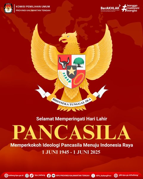 Komisi Pemilihan Umum Provinsi Kalimantan Tengah melaksanakan Upacara Peringatan Hari Lahir Pancasila ke - 80 Tahun 2025 di halaman Kantor KPU Provinsi Kalimantan Tengah pada Senin, 2 Juni 2026.