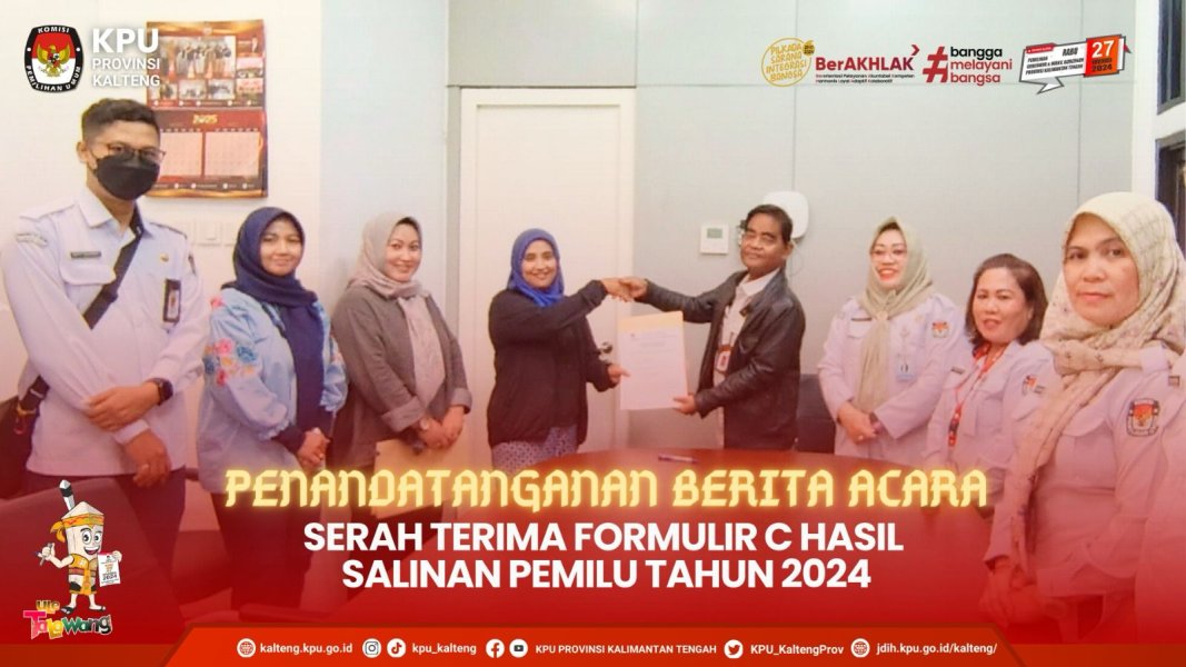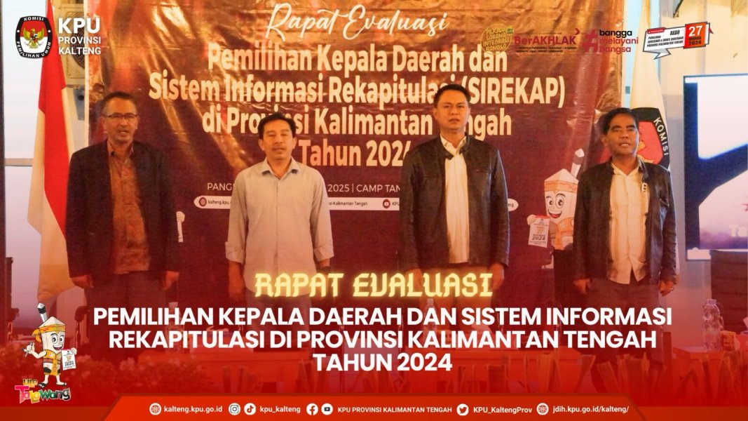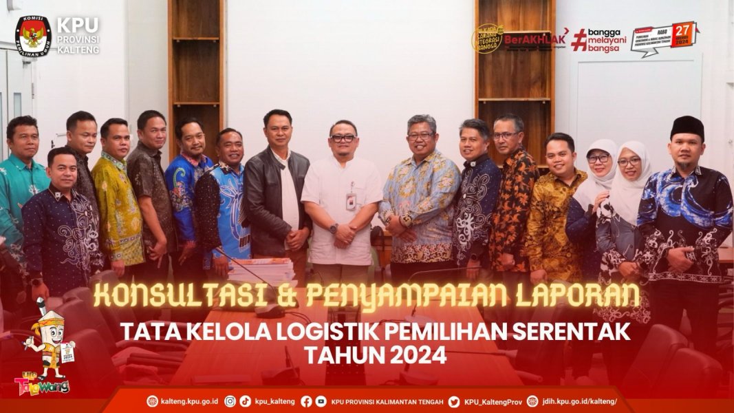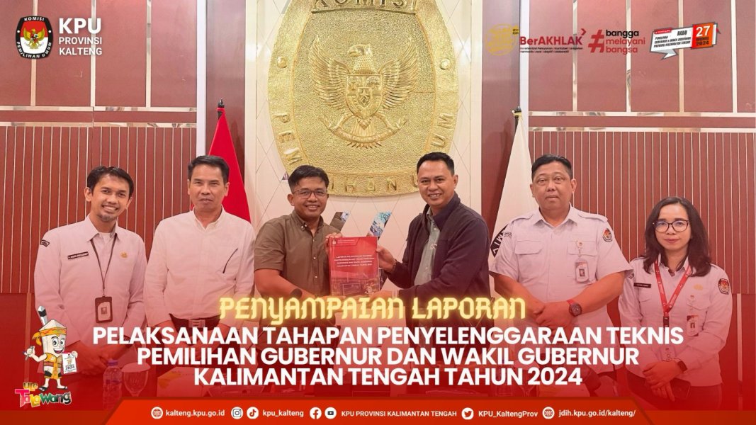 Komisi Pemilihan Umum Provinsi Kalimantan Tengah dan 10 Komisi Pemilihan Umum Kabupaten menyampaikan Laporan Pelaksanaan Tahapan Penyelenggaraan Teknis Pemilihan Gubernur dan Wakil Gubernur Kalimantan Tengah Tahun 2024 kepada Anggota Divisi Teknis Penyelenggara Komisi Pemilihan Umum Republik Indonesia, Idham Holik di Ruang Rapat Komisi Pemilihan Umum Republik Indonesia pada Senin, 14 April 2025. Idham Holik didampingi oleh Kabag Pemungutan dan Penghitungan Suara, Andi Bagus. Hadir Ketua Komisi Pemilihan Umum Provinsi Kalimantan Tengah Sastriadi, Anggota Divisi Teknis Penyelenggaraan Pemilu Dwi Swasono, Sekretaris Komisi Pemilihan Umum Provinsi Kalimantan Tengah Muhammad Hasyim, Anggota Divisi Teknis Penyelenggaraan Pemilu dan Kasubbag Teknis Penyelenggaraan Pemilu dan Hukum Komisi Pemilihan Umum Kabupaten didampingi oleh Kabag Teknis Penyelenggaraan Pemilu dan Hukum serta Kasubbag Teknis Penyelenggaraan Pemilu Komisi Pemilihan Umum Provinsi Kalimantan Tengah. Komisi Pemilihan Umum Kabupaten yang menyampaikan laporan diantaranya Komisi Pemilihan Umum Kabupaten Lamandau, Komisi Pemilihan Umum Kabupaten Kotawaringin Timur, Komisi Pemilihan Umum Kabupaten Kotawaringin Barat, Komisi Pemilihan Umum Kabupaten Murung Raya, Komisi Pemilihan Umum Kabupaten Barito Utara, Komisi Pemilihan Umum Kabupaten Gunung Mas, Komisi Pemilihan Umum Kabupaten Seruyan, Komisi Pemilihan Umum Kabupaten Katingan, Komisi Pemilihan Umum Kabupaten Pulang Pisau, dan Komisi Pemilihan Umum Kabupaten Kapuas. Sebelumnya pada tanggal 27 Maret 2024, Komisi Pemilihan Umum Provinsi Kalimantan Tengah mendampingi Komisi Pemilihan Umum Kabupaten Barito Timur, Komisi Pemilihan Umum Kabupaten Barito Selatan, Komisi Pemilihan Umum Kabupaten Sukamara, dan Komisi Pemilihan Umum Kota Palangka Raya dalam penyampaian Laporan Pelaksanaan Tahapan Penyelenggaraan Teknis Pemilihan Tahun 2024.