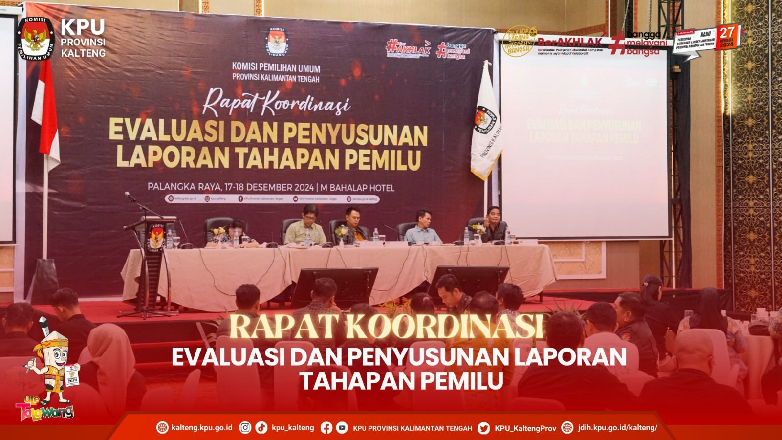 Komisi Pemilihan Umum Provinsi Kalimantan Tengah menggelar Rapat Koordinasi Evaluasi dan Penyusunan Laporan Tahapan Pemilu. Bertempat di M Bahalap Hotel Palangka Raya, berlangsung selama 2 hari, Selasa – Rabu, 17-18 Desember 2024.
