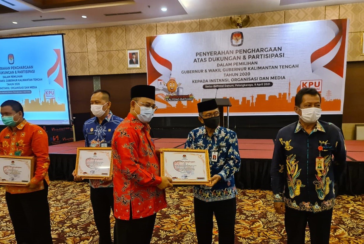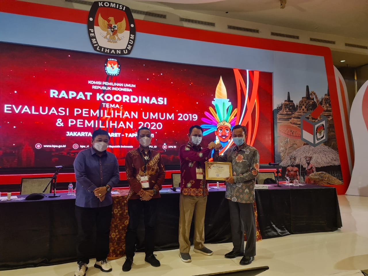 Jakarta, kalteng.kpu.go.id – Komisi Pemilihan Umum (KPU) Provinsi Kalimantan Tengah berhasil meraih penghargaan kepada Satuan Kerja (satker) KPU yang berprestasi dalam kategori Penyelenggaraan Sistem Pengendalian Intern Pemerintah, Kategori Satker Menengah TERBAIK I (Satu). Pemberian penghargaan ini diberikan disela-sela kegiatan penutupan Rapat Koordinasi Evaluasi Pemilu 2019 dan Pemilihan 2020. Penghargaan secara langsung diberikan oleh Komisioner KPU RI, Pramono Ubaid Tanthowi dan diterima oleh Ketua KPU Provinsi Kalimantan Tengah, Harmain. Ketua KPU Provinsi Kalimantan Tengah Harmain sangat bersyukur dengan apresiasi yang diberikan oleh KPU RI atas kinerja SPIP KPU Provinsi Kalimantan Tengah yang dinilai terbaik. Menurut beliau penyelenggaraan pemerintahan tentu saja mencakup banyak hal yang sangat luas, maka dari itu perlu adanya tata kelola penyelenggaraan pemerintah yang baik. Karena itulah, keberadaan SPIP ini sangat penting. “Sistem Pengendalian Internal Pemerintah dirasa sangat penting untuk dijalankan oleh setiap organisasi pemerintahan, baik pusat maupun daerah, guna memberikan jaminan terhadap kualitas kinerja pemerintahan secara keseluruhan, sehingga dapat menciptakan akuntabilitas keuangan negara dan tata kelola pemerintahan yang baik”, kata Harmain saat ditemui usai menerima penghargaan. Jika SPIP dilaksanakan dengan baik dan benar, SPIP akan memberi jaminan dimana seluruh penyelenggara dalam hal ini KPU sebagai penyelenggara Pemilu. “Kedepan kita mengharapkan KPU provinsi Kalimantan Tengah dapat mempertahankan Penghargaan ini dengan inovasi-inovasi dan terobosan baru kedepan sehingga bukan hanya kategori ini saja yang kita dapat tapi kategori penghargaan yang lain dan ucapan terima kasih kepada Sekretariat KPU Provinsi serta KPU Kabupaten/Kota Se – Kalteng yang telah mendukung terselenggaranya SPIP sehingga berjalan dengan baik sehingga berkesempatan untuk meraih penghargaan ini”, pungkas Harmain. (DM)