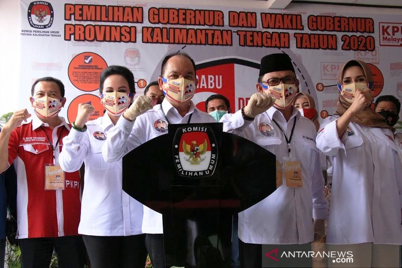Palangka Raya (ANTARA)- Pasangan Bakal Calon Gubernur dan Wakil Gubernur Kalimantan Tengah, Ben Brahim - Ujang Iskandar resmi mendaftarkan di ke Komisi Pemilihan Umum (KPU) Provinsi Kalimanatan Tengah. "Pada hari ini pasangan Ben - Ujang secara resmi telah mendaftarkan diri sebagai bakal calon Gubernur - Wakil Gubernur. Pendaftaran ini menjadi pasangan pertama yang mendaftarkan diri maju di Pilkada Kalteng 2020," kata Ketua KPU Kalteng, Harmain. Harmain menyatakan syarat pendaftaran yang disampaikan pasangan tersebut telah memenuhi ketentuan. KPU Kalteng pun juga telah menyerahkan berkas berita acara pendaftaran pasangan bakal calon Ben - Ujang. "Selanjutnya kami akan memeriksa kelengkapan berkas pencalonan yang telah disampaikan. Jika ada yang kurang maka akan kami sampaikan ke penghubung untuk dilengkapi," kata Harmain. Proses pendaftaran pasangan Ben-Ujang sendiri dimulai sekitar pukul 11.30 WIB hingga pukul 15.00 WIB. Pasangan itu diusung oleh tiga partai politik yakni Partai Demokrat yang memiliki enam kursi di DPRD Kalteng, Gerindra lima kursi dan Hanura satu kursi di DPRD Kalteng. Sementara itu Bakal Calon Gubernur Kalteng, Ben Brahim usai pendaftaran mengajak masyarakat di Kalimantan Tengah menyambut pesta demokrasi lima tahunan itu dengan penuh kegembiraan. "Dengan falsafah 'Huma Betang' mari sukseskan dan kawal Pilkada dengan penuh kerukunan, saling menghormati dan selalu memegang tali persaudaraan sehingga mampu terpilih pemimpin yang membawa Kalteng semakin rukun, damai, maju dan rakyat sejahtera," kata Ben yang juga merupakan Bupati Kapuas, Kalteng. Sementara itu, Bakal Wakil Gubernur Kalteng, Ujang Iskandar mengklaim pihaknya merupakan pasangan yang cocok. Salah satunya menurut dia karena merupakan masyarakat dari wilayah Timur dan Barat Kalimantan Tengah dan bertemu di wilayah tengah yakni Kota Palangka Raya yang merupakan ibu kota provinsi. "Insya Allah kami akan memberikan membangun dan memberikan pelayanan terbaik kepada seluruh masyarakat tanpa ada pembeda antara satu dengan yang lain. Kami juga berkomitmen untuk Kalimantan Tengah yang maju aman dan masyarakat sejahtera," kata Ujang yang juga mantan Bupati Kotawaringin Barat dua periode itu.(Rendhik ANTARA).