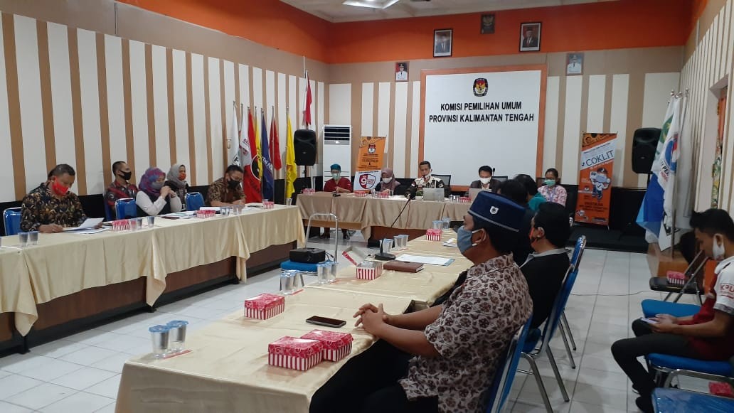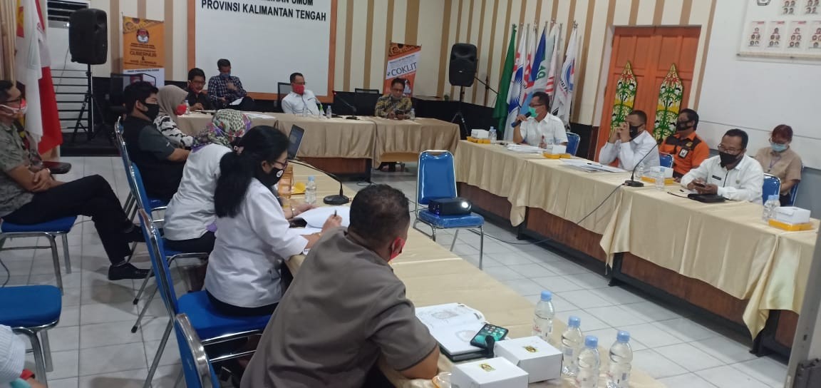 Palangka Raya- Komisi Pemilihan Umum Provinsi Kalimantan Tengah menggelar RDK (Rapat Dalam Kantor) Persiapan Tahapan Pemeriksaan Kesehatan dalam Pemilihan Gubernur dan Wakil Gubernur Kalimantan Tengah Tahun 2020 di aula RPP KPU Provinsi Kalteng, Jumat (14/08). Peserta yang diundang adalah dari Ikatan Dokter Indonesia (IDI), Himpunan Psikologi Indonesia (HIMPSI) dan Badan Narkotika Nasional (BNN) Provinsi Kalimantan Tengah serta KPU Kabupaten Kotawaringin Timur (KOTIM). Dalam rapat Plh. Ketua KPU Provinsi Kalimantan Tengah Eko Wahyu Sulistiobudi menyampaikan bahwa, “RDK dilaksanakan terkait persiapan tahapan pencalonan dan persiapan pembentukan tim pemeriksaan kesehatan pasangan calon dimana stakeholder seperti IDI, HIMPSI dan BNN akan melakukan tes kesehatan kepada calon Gubernur dan Wakil Gubernur Kalimantan Tengah dan juga pemilihan Bupati dan Wakil Bupati Kotim” ujar Eko. Pada kesempatan yang sama Sastriadi selaku Divisi Teknis Penyelenggara menyampaikan 3 (tiga) lembaga/himpunan yang akan masuk dalam tim dimaksud seperti IDI, HIMPSI dan BNN nantinya akan melakukan tes kesehatan baik itu tes kesehatan jasmani, rohani dan bebas narkoba. Oleh karena itu menurut Sastriadi dipandang perlu dilakukan RDK seperti ini agar ada kesiapan dan pemberitahuan di awal bahwa KPU Provinsi Kalimantan Tengah akan melaksanakan tahapan tersebut. Dan juga Ketua KPU Kabupaten Kotim Siti Fattonah, “mengharapkan kerjasama yang baik juga antara IDI, HIMPSI dan BNN yang ada di Provinsi Kalimantan Tengah untuk bisa memfasilitasi kegiatan tahapan pemeriksaan kesehatan yang juga dilaksanakan untuk calon Bupati dan Wakil Bupati Kotawaringin Timur yang diselenggarakan bersama dengan tahapan pemeriksaan kesehatan Pilgub Kalteng, karena untuk sebagian contohnya HIMPSI tidak ada di Kabupaten Kotim untuk saat ini, yang ada hanya IDI dan BNN”, ujar Siti. Oleh karena itu beliau meminta agar HIMPSI Wilayah Kalteng bisa berkoordinasi dengan anggota HIMPSI yang ada di Kotim bisa memfasilitasi kegiatan dimaksud. Sastriadi juga mengucapkan terima kasih kepada semua yang telah bersedia bekerja sama dengan KPU sekaligus juga menginformasikan bahwa nanti akan dilaksanakan Perjanjian Kerja Sama (PKS) antara KPU Provinsi Kalimantan Tengah, IDI Wilayah Kalteng, HIMPSI Wilayah Kalteng dengan BNN Provinsi Kalimantan Tengah sebagai bentuk kesepahaman dan pernyataan kesiapan membantu dalam proses kegiatan Tahapan Pemeriksaan Kesehatan bagi Calon Gubernur dan Wakil Gubernur Kalimantan Tengah. Mengakhiri kegiatan RDK, Eko menyampaikan harapannya pada saat proses pemeriksaan kesehatan nanti semua yang terlibat dapat bekerja dengan maksimal dalam proses pelaksanaan kegiatan dimaksud.(DM)
