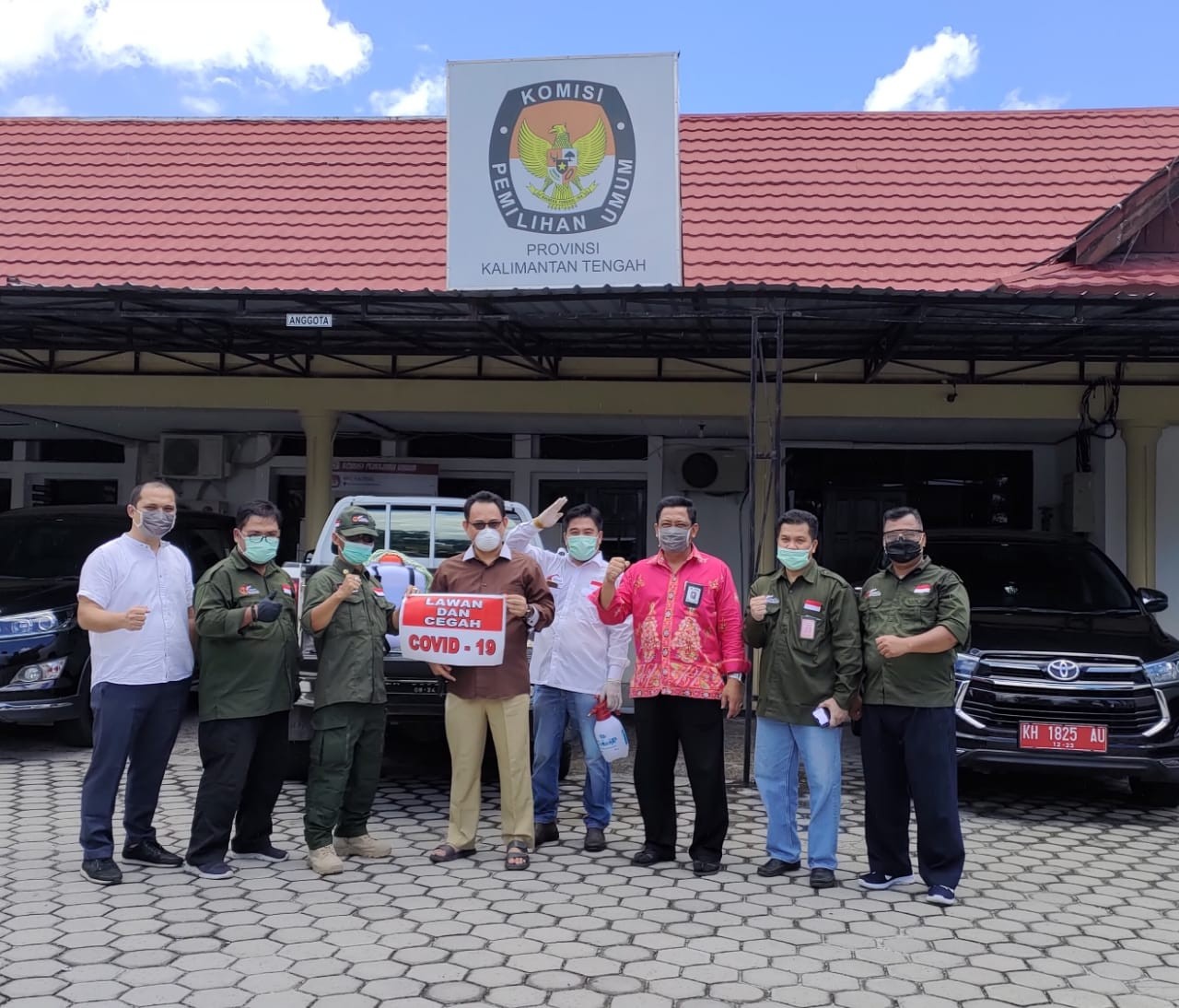 www.kpukalteng.go.id, Palangka Raya – Sebagai tanda peduli dengan semakin meningkatnya kasus Pandemi Covid-19 di kota Palangka Raya, Komisi Pemilihan Umum Provinsi Kalimantan Tengah turut mengambil bagian dalam mensosialisasikan penanggulangan pencegahan penyebaran virus Covid-19 dengan cara membagikan masker secara gratis oleh 3 (tiga) Tim yang ditugaskan di 4 (empat) wilayah Kelurahan. Pada wilayah kelurahan Sabaru dipimpin oleh Kepala Bagian Program, Data, Organisasi dan SDM, Toni Sadoso Saputra, pembagian maskernya meliputi Pasar Tradisional Kereng Bangkirai serta Dermaga Kereng Bangkirai, Tim 2 (dua) dipimpin oleh Plt. Kepala Bagian Hukum Teknis dan Hupmas, Rifani, pembagian maskernya meliputi wilayah Kelurahan Langkai dan Bukit Tunggal meliputi Pasar PU Palangka Raya dan Pasar Tradisional Rajawali. Kemudian Tim 3 (tiga) dipimpin oleh Plt. Kepala Bagian Keuangan, Umum dan Logistik, Yasin Navarin, pembagian maskernya meliputi wilayah Kelurahan Palangka yaitu di Pasar Kahayan. (Jum'at, 08/05). Ketua KPU Provinsi Kalimantan Tengah Harmain, mengatakan “Kegiatan ini sebagai salah satu wujud ikhtiar kami dalam membantu Pemerintah untuk mencegah penyebaran virus Corona”. KPU juga mempunyai gerakan yakni #KPULawanCovid19# yang saat ini gencar digaungkan oleh KPU Republik Indonesia sampai ke tingkat Provinsi dan Kabupaten/Kota. Harmain pun tak lupa menghimbau kepada masyarakat untuk tetap berada di rumah dan ketika beraktivitas agar selalu menggunakan masker. (G.C)