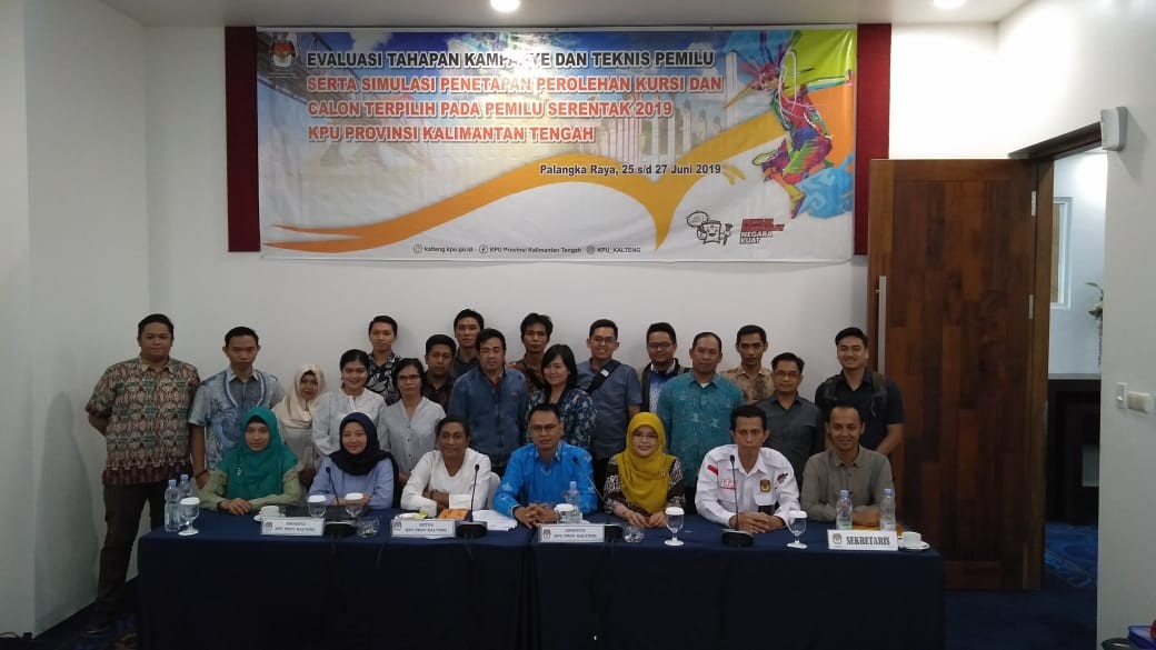 Palangka Raya – Pemilu serentak 2019 merupakan pemilu yang diadakan pertama kali di Indonesia dengan memilih Anggota DPD, DPR RI, DPRD Provinsi, DPRD Kabupaten/Kota dan Presiden serta Wakil Presiden secara bersamaan. Karena itu KPU khususnya KPU Provinsi Kalimantan Tengah perlu mengevaluasi pelaksanaan Pemilu tersebut dengan mengadakan rapat internal bertajuk “Evaluasi Tahapan Kampanye dan Teknis Pemilu Serta Simulasi Penetapan Perolehan Kursi dan Calon Terpilih Pada Pemilu Serentak 2019” bersama KPU Kabupaten/Kota se-Kalimantan Tengah. Anggota KPU divisi Teknis, Kasubbag Teknis dan Hupmas serta operator SITUNG dari 14 KPU Kabupaten/Kota se-kalimantan Tengah hadir dalam rapat yang digelar tanggal 25 – 27 Juni 2019 bertempat M. Bahalap Hotel Palangka Raya. Tidak hanya mengevaluasi tahapan Pemilu, dalam rapat ini juga dilakukan simulasi penetapan perolehan kursi dan calon terpilih. Sapta Tjita, Anggota KPU Kalteng selaku wakil divisi teknis, membuka acara sekaligus memberikan sambutan dengan didampingi anggota KPU lainnya, Sastriadi, Eko Wahyu dan Wawan Wiraatmaja serta sekretaris KPU, Arief Suja’i. Sapta berharap KPU dapat bekerja lebih baik dalam melaksanakan penetapan kursi dan calon terpilih nanti. Setiap permasalahan yang terjadi ditiap Kabupaten/Kota agar dapat didiskusikan dalam rapat ini, untuk selanjutnya dijadikan bahan evaluasi kerja KPU selanjutnya, himbau Sapta. Pada saat yang sama, Arief Suja’i juga menambahkan kepada Kabupaten/Kota khususnya sekretariat untuk mampu dan sukses mengawal tugas-tugas KPU, apalagi ditahun 2020 KPU Kalteng akan menyongsong tugas besar dan utama yaitu Pemilihan Gubernur Kalimantan Tengah serta Pemilihan Bupati di Kotawaringin Timur, ucapnya. Selanjutnya rapat dipimpin langsung Sastriadi, anggota divisi teknis. Dihari kedua rapat, beliau menyampaikan materi tentang supervisi dan evaluasi tahapan pemungutan dan penghitungan suara serta rekapitulasi perolehan suara dan penyelesaian publikasi situng Pemilu 2019. Dilanjutkan dengan simulasi penetapan kursi dari calon terpilih dengan mengambil sampel dari beberapa Kabupaten/Kota. Malam dan keesokan hari, dilaksanakan sesi diskusi kelompok atas permasalahan di 14 KPU Kabupaten/Kota terutama bidang teknis dan partisipasi masyarakat (parmas) yang dituangkan dalam bentuk Daftar Invetarisasi Masalah (DIM) yang secara garis besar memuat tentang penerapan aplikasi SITUNG, sedangkan dalam bidang parmas antara lain tentang relawan demokrasi, sosialisasi , kampanye, badan ad hoc. (Wln)