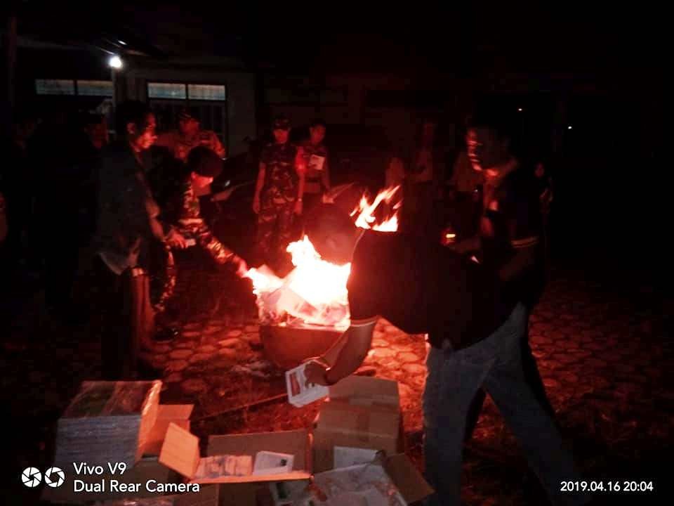 www.kalteng.kpu.go.id, Kuala Kapuas - KPU Kabupaten Kapuas telah melaksanakan pemusnahan surat suara Pemilu 2019 sebanyak 6.973 Surat Suara Pemilu Serentak Tahun 2019. (Selasa, 16/04/2019). Pelaksanaan pemusnahan surat suara pada Pemilu Sentak Tahun 2019 dilaksanakan oleh KPU Kabupaten Kapuas disaksikan bersama bertempat di halaman GOR Panunjung Tarung yang dimulai pada pukul 20.00 WIB ini dipimpin oleh Anggota KPU Kabupaten Kapuas Budi Prayitno bersama dengan Anggota KPU Kabupaten Kapuas Adiresido dan Muntiara, dimana dihadiri serta disaksikan oleh Bawaslu Kapuas, Kapolres Kapuas, Dandim 1011/KLK, pihak TNI-AL, Kapolsek Selat. Budi Prayitno Anggota KPU Kabupaten Kapuas mengatakan “Pemusnahan surat suara Pemilu 2019 yang dilakukan pada malam hari ini sebagai tindak lanjut atas surat dinas KPU RI nomor 667/PP.10.5-SD/07/KPU/IV/2019 tanggal 10 April 2019 Perihal Pemusnahan Logistik Pemilu Tahun 2019 memperhatikan Peraturan Perundangan yang ada, dimana yang dimusnahkan adalah surat suara yang rusak dan surat suara yang setelah dihitung ada kelebihan dari kebutuhan yang ada dengan total jumlah surat suara rusak berjumlah 576 dan kelebihan surat suara berjumlah 6.397”. Adapun surat suara yang dimusnahkan sebagai berikut: 1) Surat Suara Rusak berjumlah 576 dengan rincian: Surat Suara Presiden dan Wakil Presiden dengan jumlah 304; Surat Suara DPR RI Dapil Kalteng dengan jumlah 87; Surat Suara DPD RI Dapil Kalteng dengan jumlah 46; Surat Suara DPRD Provinsi Dapil Kalteng 5 dengan jumlah 46; Surat Suara DPRD Kabupaten Dapil Kapuas 1 dengan jumlah 15; Surat Suara DPRD Kabupaten Dapil Kapuas 2 dengan jumlah 42; Surat Suara DPRD Kabupaten Dapil Kapuas 3 dengan jumlah 6; Surat Suara DPRD Kabupaten Dapil Kapuas 4 dengan jumlah 14; Surat Suara DPRD Kabupaten Dapil Kapuas 5 dengan jumlah 16. 2) Surat Suara Kelebihan Surat Suara berjumlah 6.397 dengan rincian: Surat Suara Presiden dan Wakil Presiden dengan jumlah 2.872; Surat Suara DPR RI Dapil Kalteng dengan jumlah 572; Surat Suara DPD RI Dapil Kalteng dengan jumlah 625; Surat Suara DPRD Provinsi Dapil Kalteng 5 dengan jumlah 500; Surat Suara DPRD Kabupaten Dapil Kapuas 3 dengan jumlah 793; Surat Suara DPRD Kabupaten Dapil Kapuas 4 dengan jumlah 210; Surat Suara DPRD Kabupaten Dapil Kapuas 5 dengan jumlah 825. “Surat Suara Pemilu 2019 yang telah dilakukan pemusnahan ini dituangkan dalam Berita Acara nomor 034/PK.01-BA/6203/KPU-Kab/IV/2019 tentang Pemusnahan Surat Suara Rusak dan Surat Suara Melebihi Kebutuhan yang nanti akan kita laporkan secara berjenjang kepada KPU Republik Indonesia melalui KPU Provinsi Kalimantan Tengah.” tutup Budi Prayitno. (G.C).
