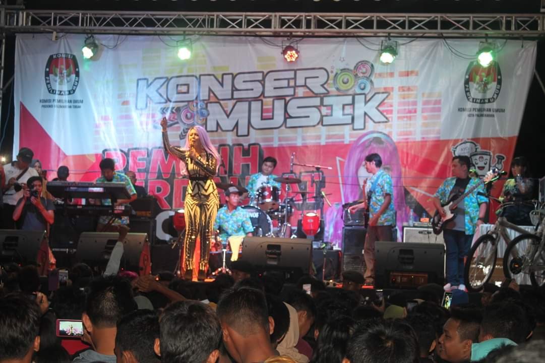 Palangka Raya – KPU Provinsi Kalimantan Tengah bersama KPU Kota Palangka Raya menggelar konser musik yang dimeriahkan artis ibu kota “Jenita Janet” serta artis lokal dengan tema “Pemilih Berdaulat Negara Kuat” di Stadion Sanaman Mantikei Palangka Raya, Sabtu malam (23/3). Konser Musik ini merupakan salah satu agenda kegiatan yang di gagas KPU RI untuk dilaksanakan di seluruh Provinsi bahakan Kabupaten/Kota se-Indonesia sebagai bentuk sosialisasi KPU untuk menyambut Pemilu Serentak tanggal 17 April mendatang. “Konser ini bagian dari sosialisasi Hari Pemungutan Suara yang dilaksanakan KPU Provinsi Kalimantan Tengah bersama dengan KPU Kota Palangka Raya dan disemua KPU Kabupaten se-kalimantan Tengah juga melaksanakan konser serupa, ungkap Harmain, Ketua KPU Kalteng saat memberikan kata sambutan. Malam ini juga bersama dengan partai politik yang hadir, akan mendekalarasikan kampanye damai karena besok terhitung tanggal 24 Maret s/d 13 April 2019, dimulainya tahapan kampanye rapat umum dan iklan di media, tambahnya. Dalam kegiatan ini KPU membagikan doorprize untuk masyarakat yang telah memegang kupon undian sebagai salah satu usaha KPU untuk mengingatkan masyarakat agar menggunakan hak pilihnya pada pemilu mendatang. Selain doorprize, dilakukan juga pembagian hadiah untuk juara 1, 2, 3 sampai dengan harapan 3 untuk pemenang lomba mural yang telah dilaksanakan KPU Kalteng pada tanggal 14-17 Maret serta lomba senam yang dilaksanakan pada tanggal 17 Maret 2019 lalu. (Dm)