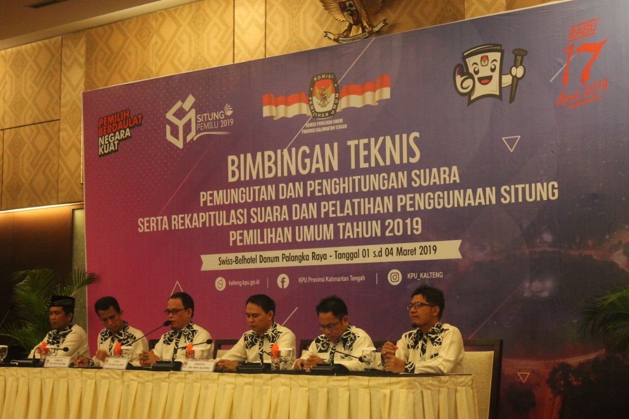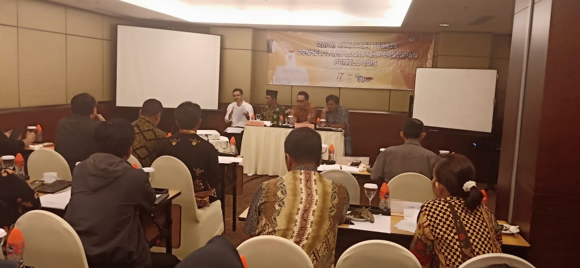 Palangka Raya - Komisi Pemilihan Umum Provinsi Kalimantan Tengah adakan Rapat Evaluasi Teknis Pengelolaan Logistik Persiapan Pemilu 2019, (1-2 Maret 2019) bertempat Swiss-Bellhotel Danum Palangka Raya. Rapat dipimpin langsung oleh Ketua KPU Provinsi Kalimantan Tengah, Harmain dan didampingi oleh anggota KPU lainnya. Dalam kesempatan tersebut Ketua KPU Prov Kalteng memaparkan persiapan Logistik sesuai ketentuan pada surat Ketua KPU RI Nomor : 1376/PP.10.2–SD/07/KPU/XI/2018 tanggal 06 November 2018, Perihal Pengadaan Logistik Pemilu 2019 di Provinsi dan Kabupaten/Kota Tahun Anggaran 2018, Peraturan Presiden Republik Indonesia Nomor 54 Tahun 2010 tentang Pengadaan Barang/Jasa Pemerintah, Peraturan Presiden Republik Indonesia Nomor 4 tahun 2015 tentang Perubahan keempat atas Peraturan Presiden Republik Indonesia No : 54 Tahun 2010 tentang Pengadaan Barang/Jasa Pemerintah. Adapun Persiapan Logistik Harmain menjelaskan untuk Pengadaan Sampul oleh KPU Provinsi Kalimantan Tengah sudah dilaksanakan di Tahun 2018 dan sudah didistribusikan ke KPU Kabupaten/Kota. Pengadaan Surat Suara oleh KPU RI masih dalam Proses Surat Suara trip Pertama sedang dalam perjalanan yang akan didistribusikan ke KPU Kabupaten Lamandau, KPU Kabupaten Kotawaringin Barat, KPU Kabupaten Sukamara dan KPU Kabupaten Gunung Mas pihak ekspedisi yang ditunjuk oleh KPU RI adalah PT. Grup Majapahit Bangun Persada. Dalam kesempatan berikutnya ada juga materi dari POLDA Provinsi Kalimantan Tengah mengenai kesiapan Polda Kalteng dalam rangka Pengamanan Pemilu Tahun 2019 yang disampaikan oleh AKBP Dharmes Kabagbinops ro ops Polda Kalteng.(LG).