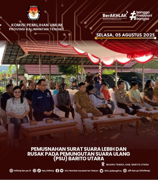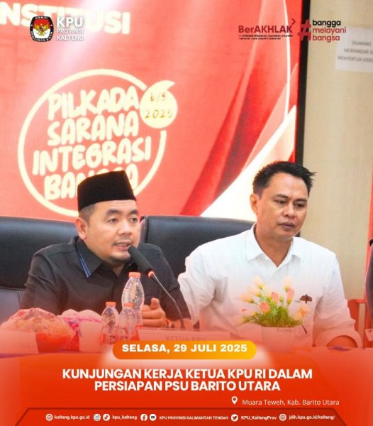 Ketua KPU RI Mochammad Afifudin melaksanakan kunjungan kerja supervisi dan monitoring persiapan Pemungutan Suara Ulang (PSU) di Barito Utara pada Selasa, 29 Juli 2025.