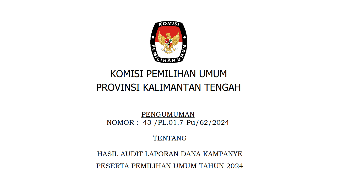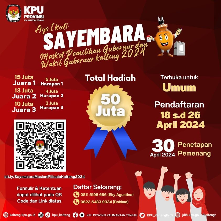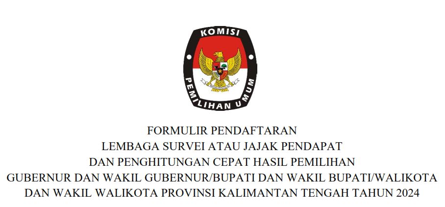 Komisi Pemilihan Umum mengumumkan Persyaratan Pendaftaran Lembaga Survei Pemilihan Dalam Negeri Pada Pemilihan Gubernur dan Wakil Gubernur/Bupati dan Wakil Bupati/Walikota dan Wakil Walikota Provinsi Kalimantan Tengah Tahun 2024. Untuk informasi lebih lanjut, KLIK DI SINI.