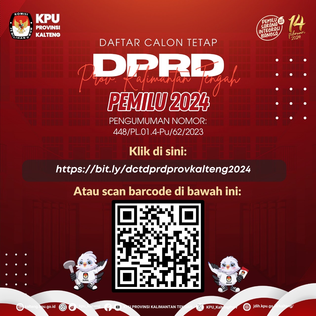 Untuk informasi selengkapnya dapat menscan barcode yang tersedia, klik link https://bit.ly/dctdprdprovkalteng2024, atau UNDUH DOKUMEN DI SINI.