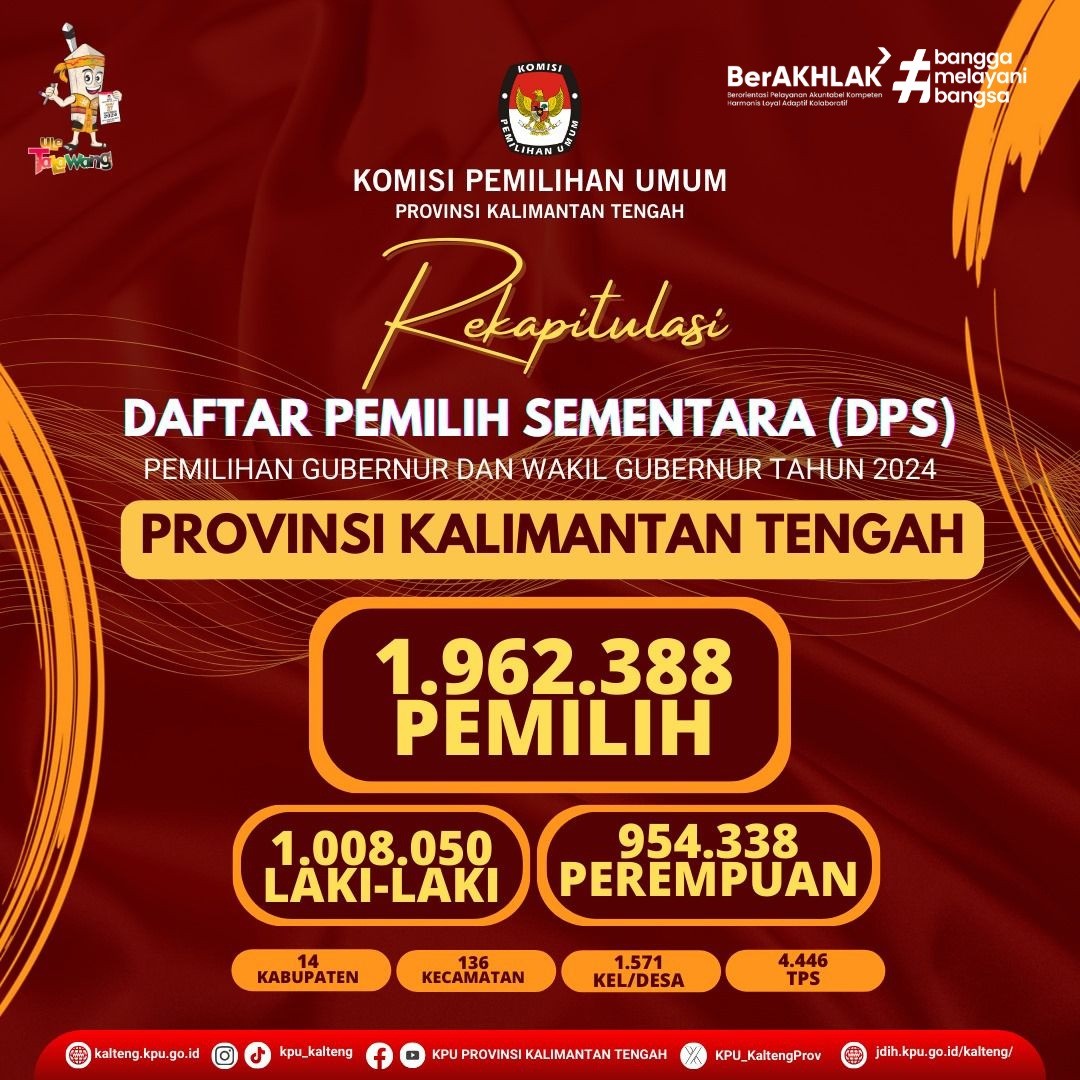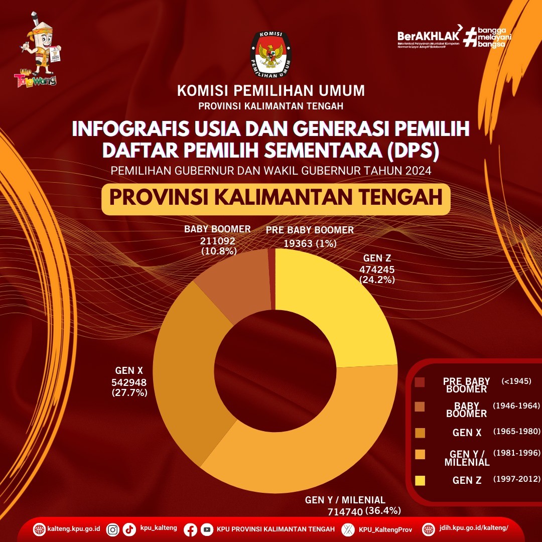 Berikut Infografis Usia dan Generasi Pemilih Daftar Pemilih Sementara (DPS) pada Pemilihan Gubernur dan Wakil Gubernur Tahun 2024 Provinsi Kalimantan Tengah.