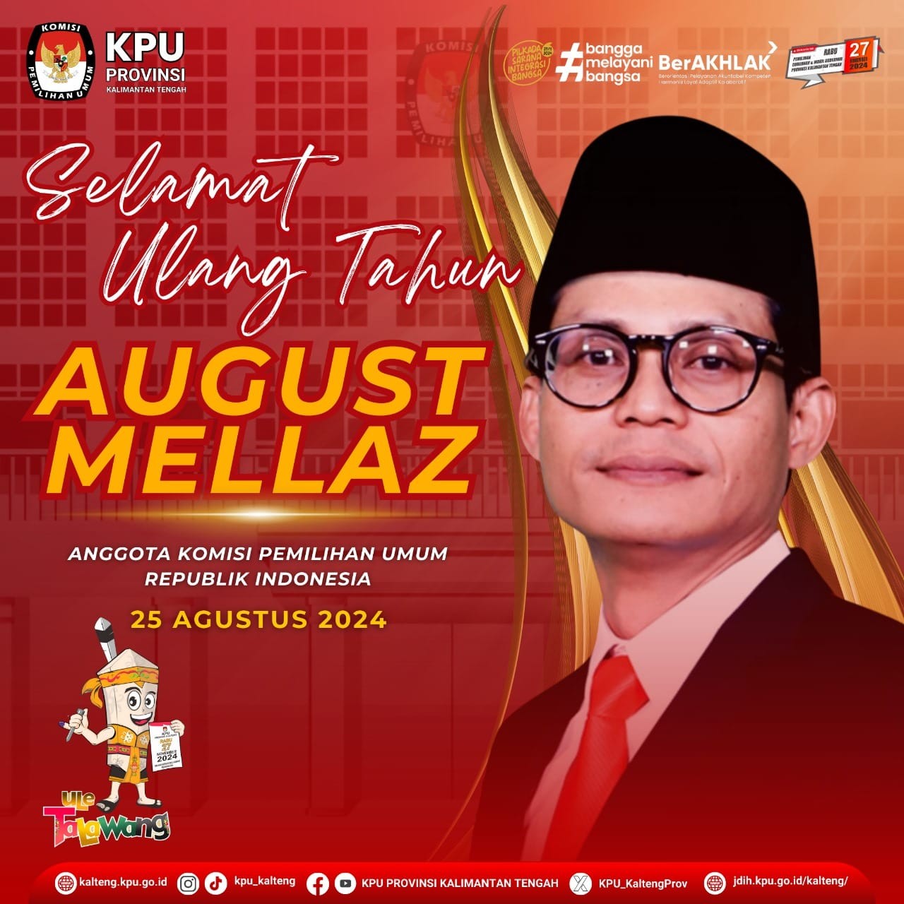 Segenap jajaran Komisi Pemilihan Umum Provinsi Kalimantan Tengah mengucapkan Selamat Ulang Tahun kepada Anggota Komisi Pemilihan Umum Republik Indonesia, August Mellaz.