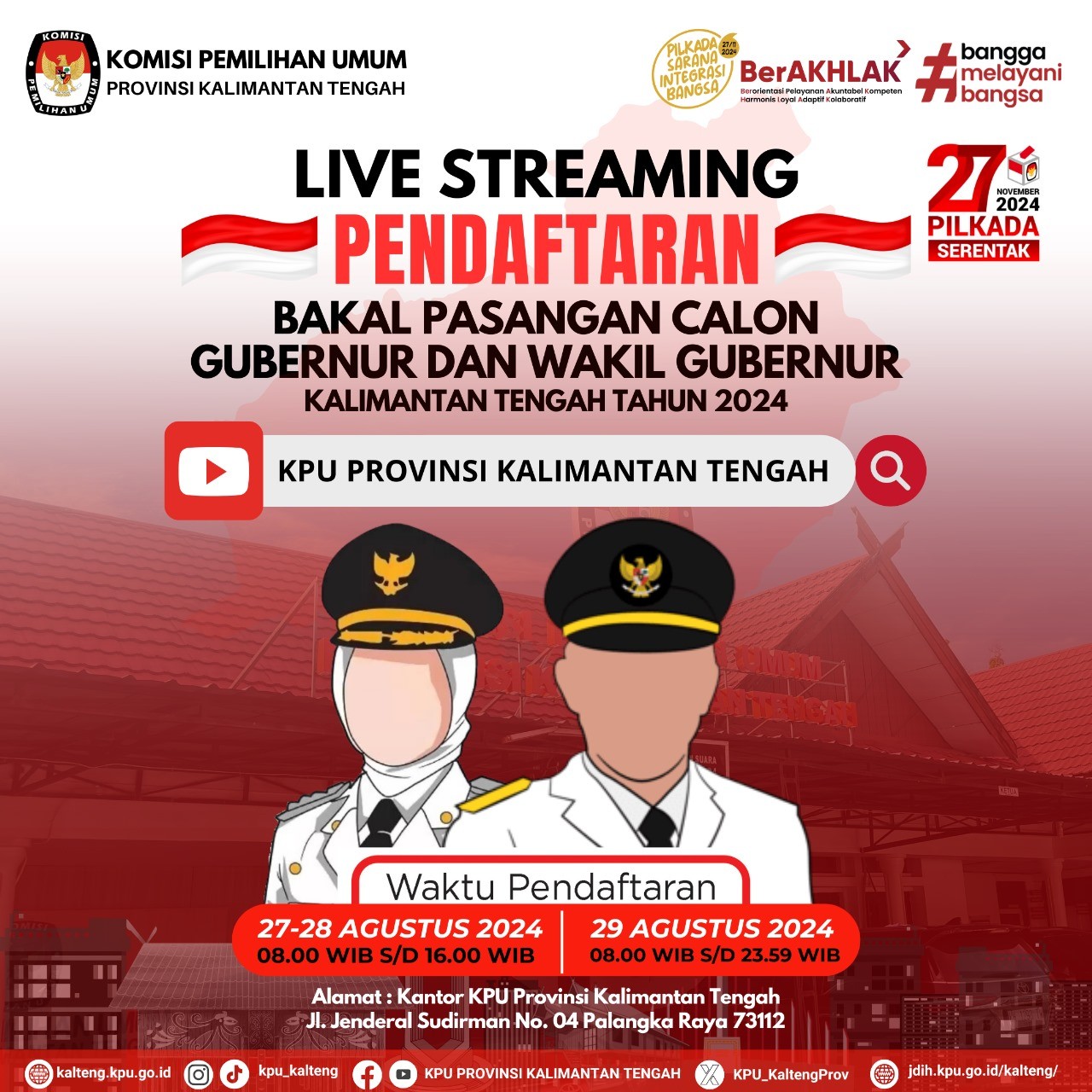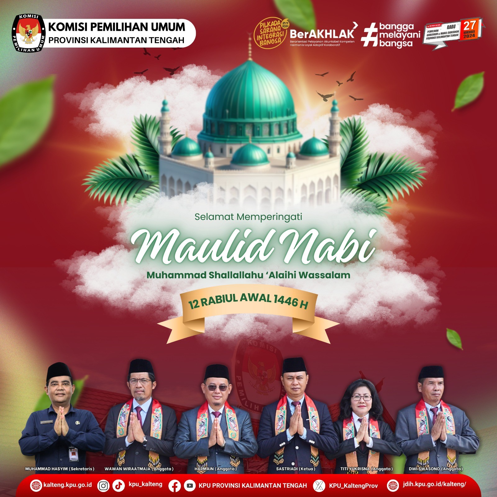 Segenap jajaran Komisi Pemilihan Umum Provinsi Kalimantan Tengah mengucapkan Selamat Memperingati Hari Maulid Nabi Muhammad SAW Tahun 2024. Semoga kita senantiasa berada dalam lindungan dan petunjuk-Nya.